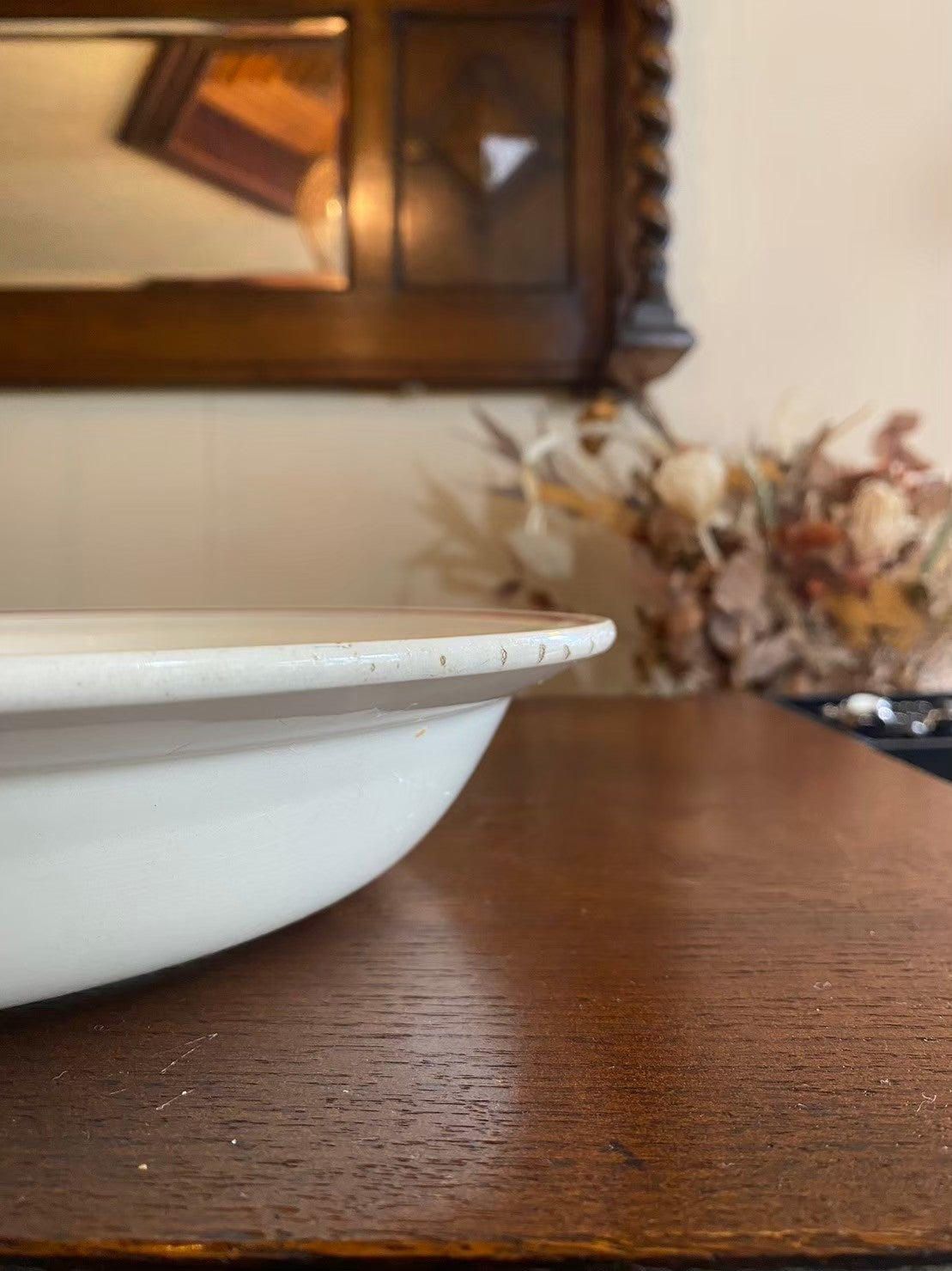 当店で取り扱いをしている食器は数十年以上経過しているものが殆どです。古いものになりますので、貫入(釉薬の細かいひび割れ)やカトラリーによる傷、シミや汚れ、小さな欠けなどがあるものもございます。なるべく細かく写真を撮っておりますが、撮りきれない部分や水を含んで現れる貫入などもありますので、新品のようなクオリティーを求めるお客様には不向きな商品になっております。ヴィンテージ・アンティークの経年変化の魅力をともにお楽しみいただければ幸いです。