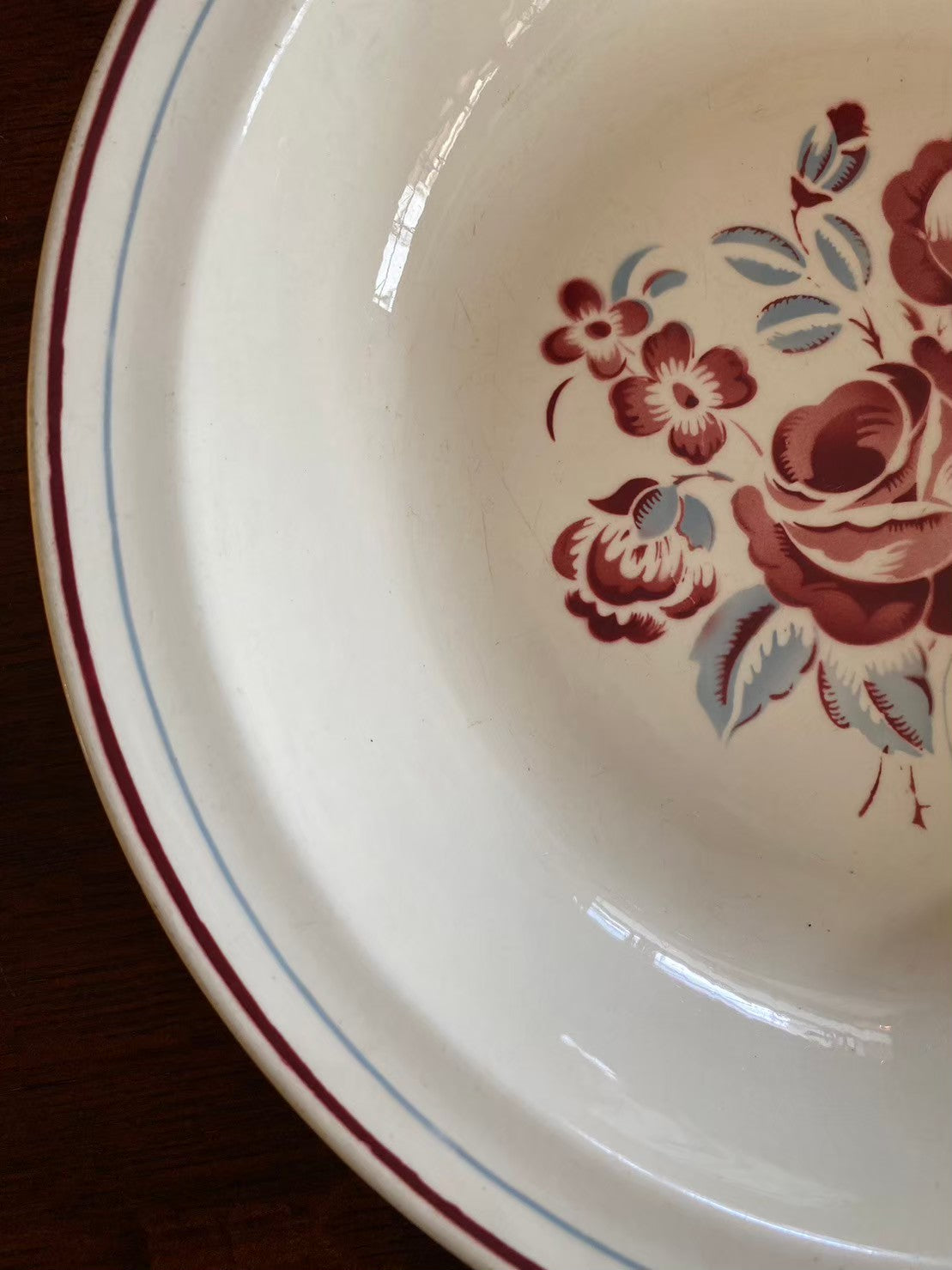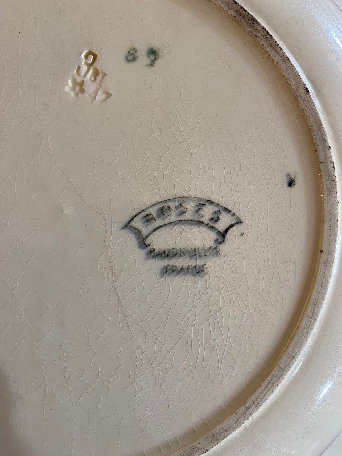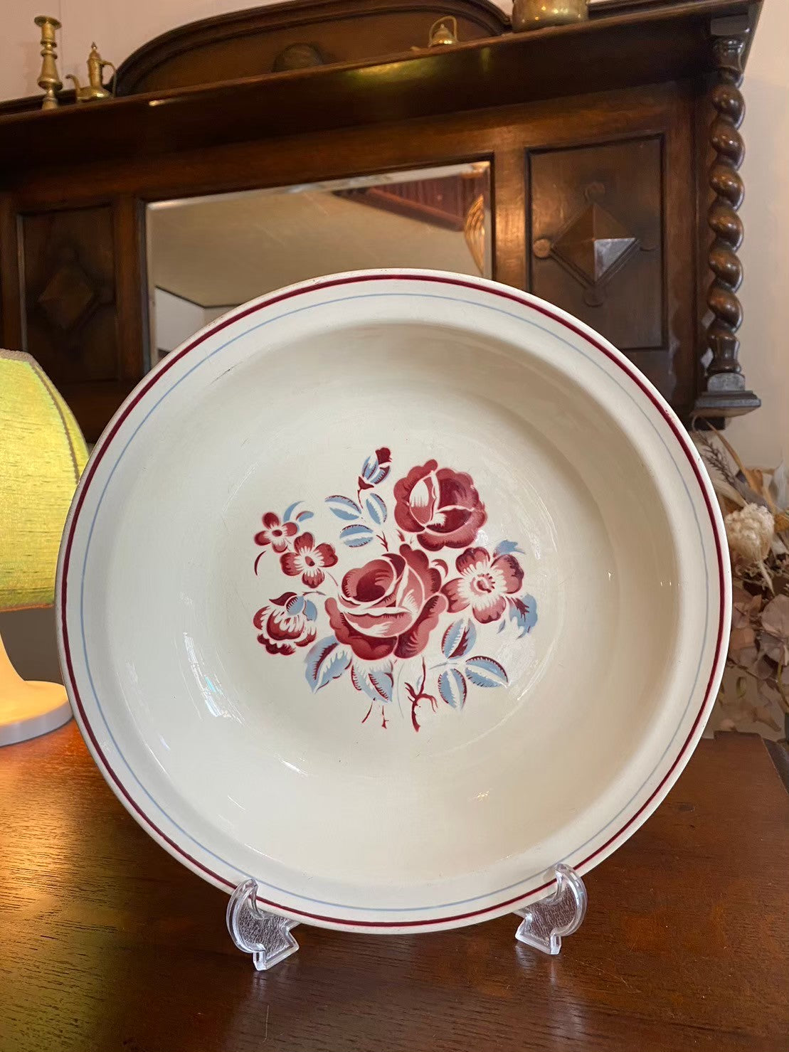フランスを代表する窯、バドンヴィレーの美しいバラが可憐に咲いたプレート。