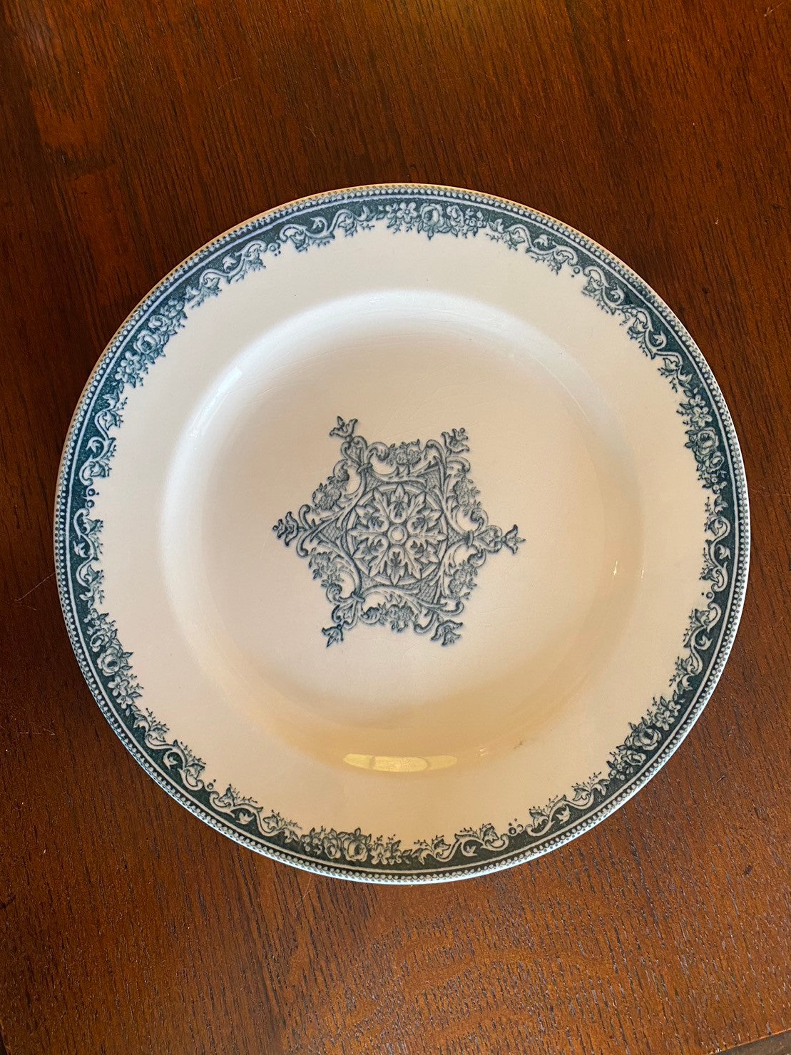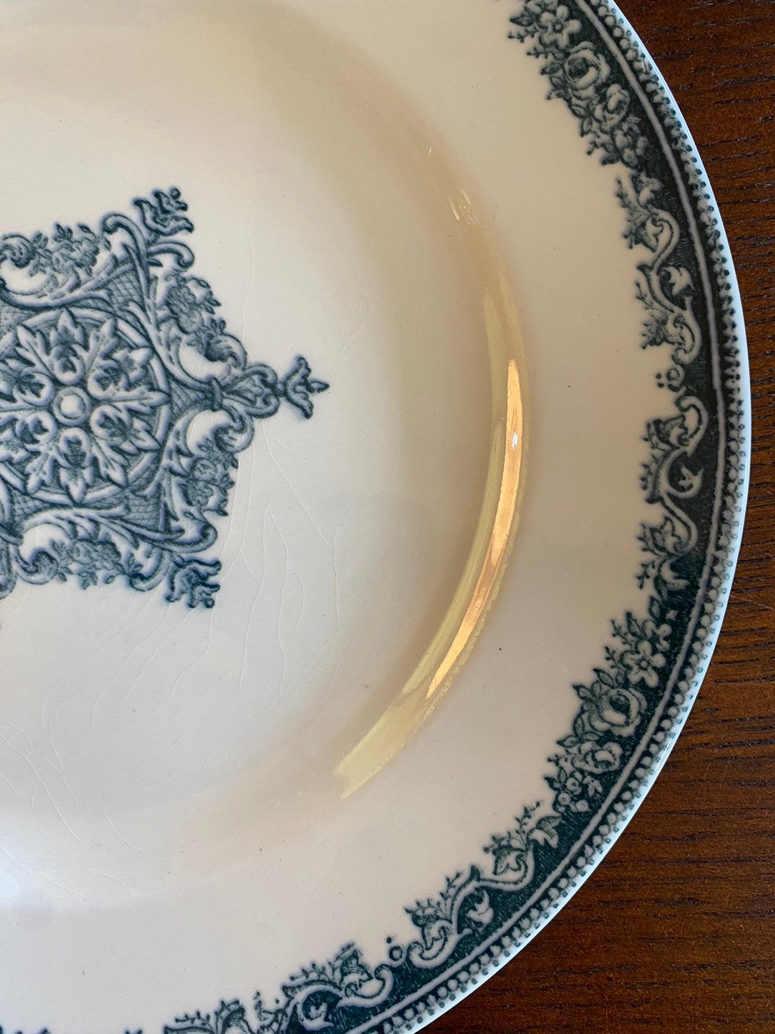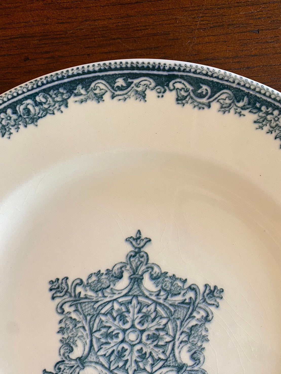 紺色のガーランドの縁取り、中央の柄は紋章の様でプライドを感じるカッコイイお皿。